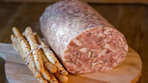 Uno dei prodotti più tipici della zona marchigiana. Le teste di maiale vengono pulite e bollite come vuole la tradizione; dopo una lunga cottura vengono disossate e tagliate a coltello insieme alla cotenna e condite con sale, pepe, rum e agrumi. Il risultato è un prodotto dal gusto saporito ma sempre equilibrato.
