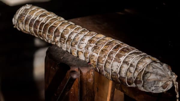 Variante del classico guanciale in cui due gole senza cotenna vengono unite, spaghettate e messe in un budello. Il risultato è un prodotto dalla forma particolare che non ha scarto, ma conserva il profumo ed il gusto del guanciale tipico.